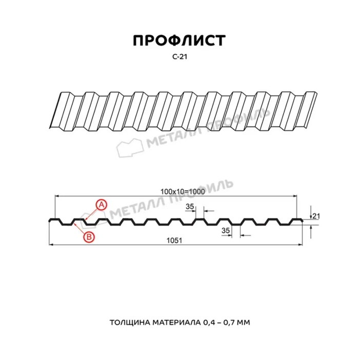 Профлист Металл-Профиль С-21 PURMAN® 0.5 мм RAL 8017 Коричневый шоколад