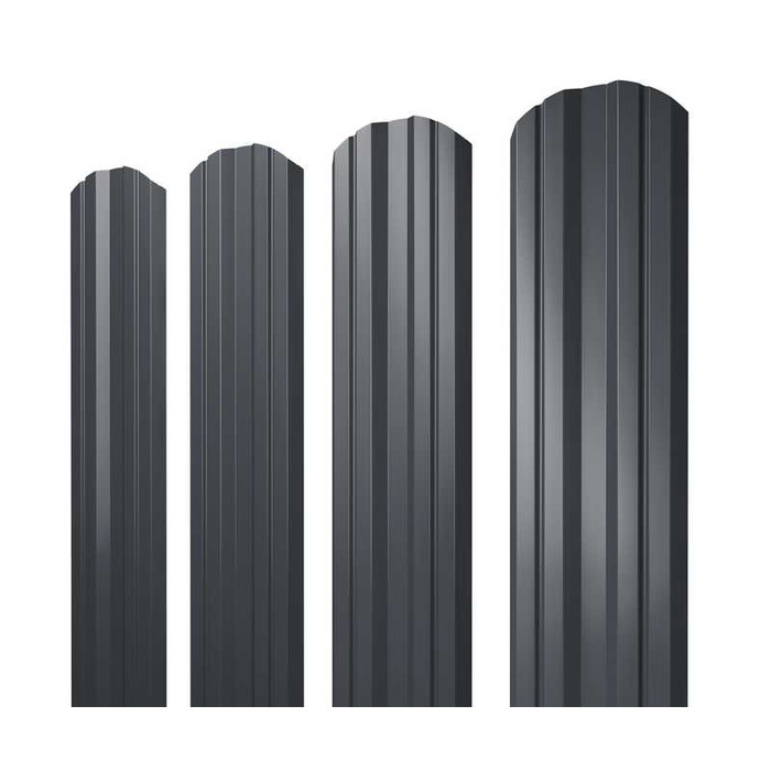 Штакетник Полукруглый Slim Grand Line 0,4 Полиэстер - double RAL 7024 Мокрый Асфальт