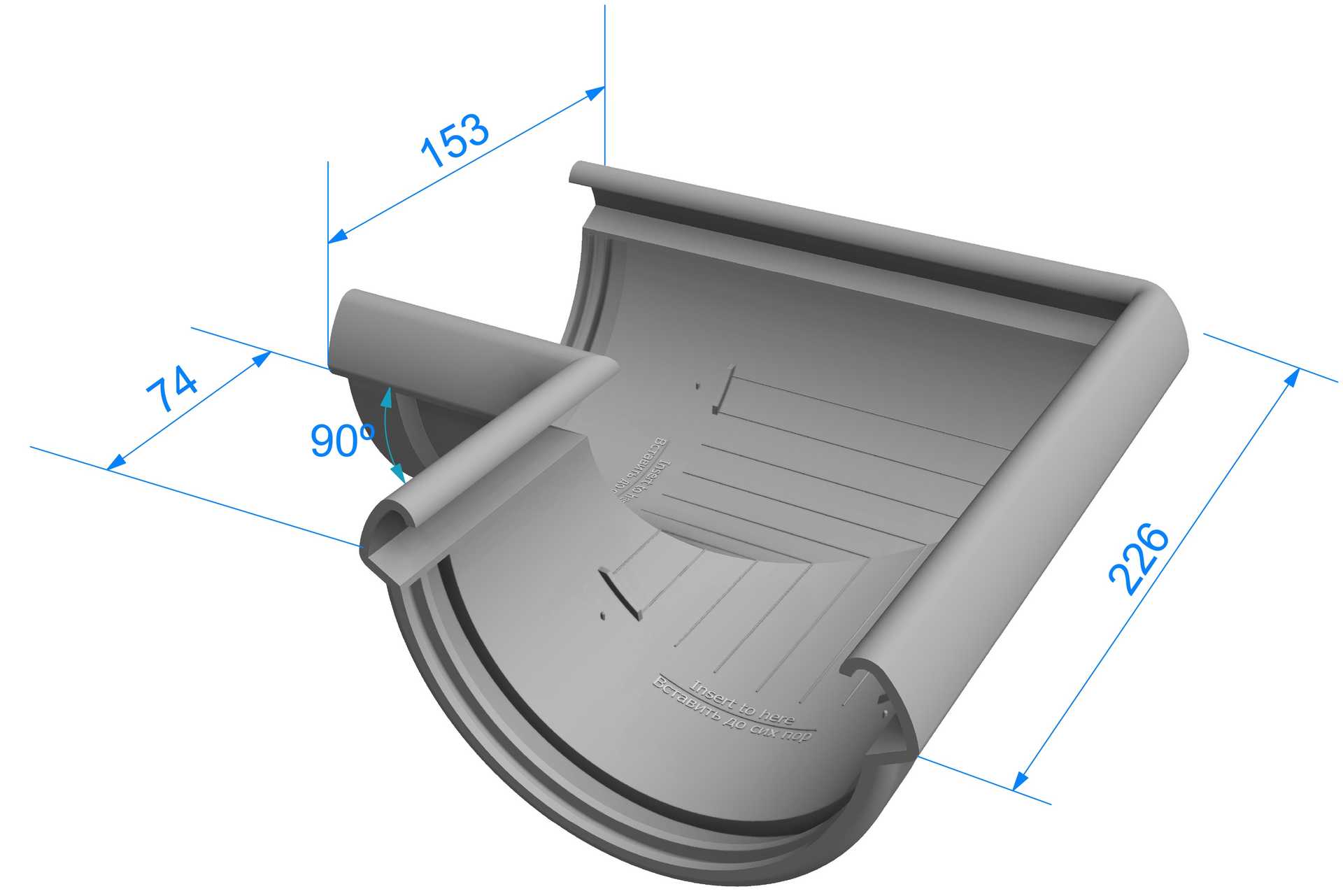 Угловые элементы устанавливаются как на внешних, так и на внутренних углах кровли и предназначены для соединения желобов.